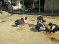 5年生の理科では、「流れる水のはたらき」の単元で運動場にS字・逆S字を作り水を流...