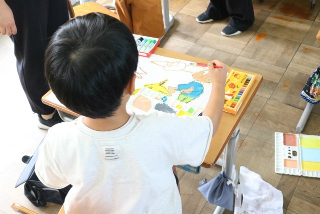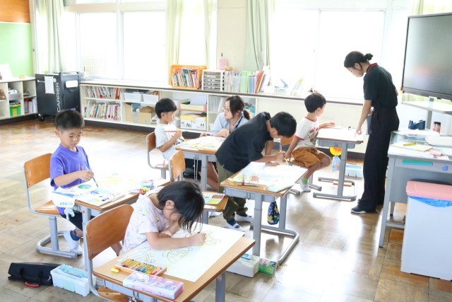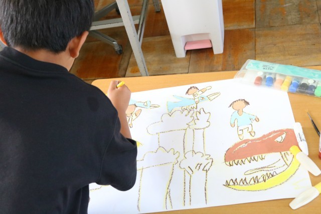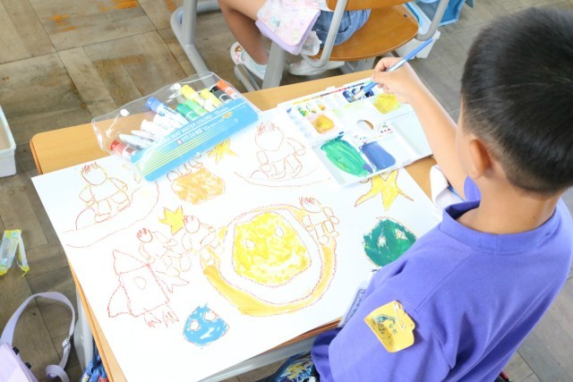 1年生の図工の授業の様子です。「もし、魔法の粉を持っていたら、どんな乗り物に乗って、どんなところへ行きたい」を想像しながら描いていました。それぞれの個性が光る素敵な作品ばかりでした。完成するのが楽しみですね。