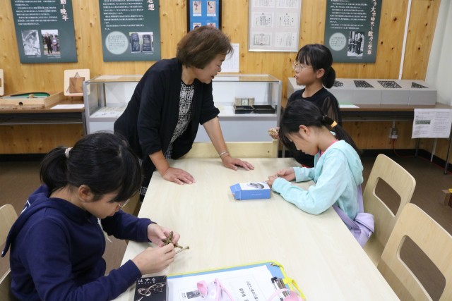 岡潔館の中にある数学館ではパズルやビリヤードなど算数にまつわる不思議がいっぱいの展示物に子どもたちは興味津々の様子でした。また、郷土資料館では、先人の偉大な功績など様々なものを見学させていただきました。