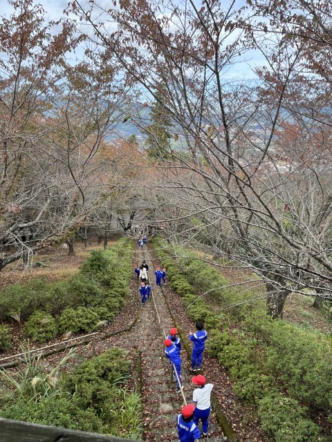 途中、地域の方のみかん畑でみかん狩りをさせていただきました。こどもたちはみかんを食べると、「元気いっぱいアンパンマン!」「めっちゃ甘い。元気でる。」「最高!」と大喜びの様子でした。険しい黒河道を登った先にみかん畑があったので、本当においしかったです。最高のひと時を過ごしました。いつも子どもたちのためにありがとうございます。