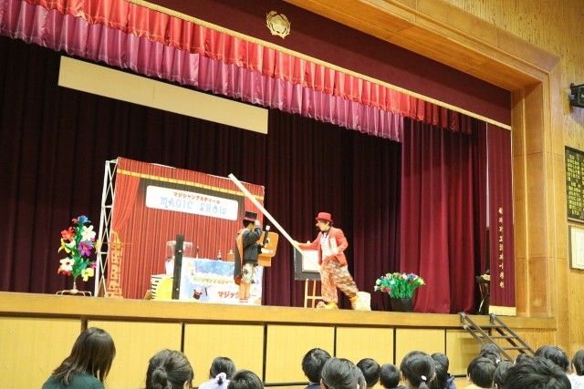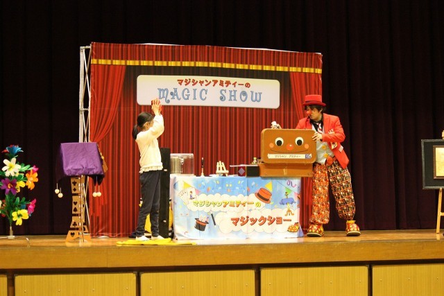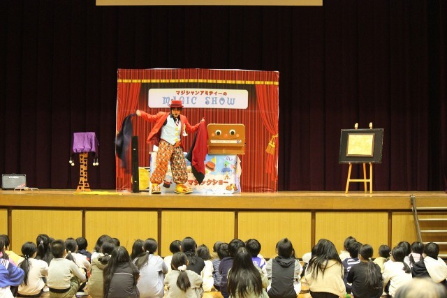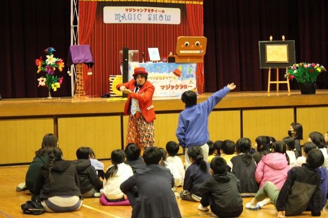 マジシャンのアミティーさんによるマジックショーを鑑賞しました。本格的なマジックを披露して下さり、次はどんなマジックだろうとワクワクしながら見ていました。こどもたちは大喜びで、とても楽しい時間を過ごすことができました。