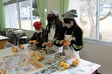 今日は6年生の子どもたちが地域の方のご厚意で、吊るし柿体験を行いました。高学年になると、包丁やピーラーを上手に使い、あっという間に出来上がっていました。風通りのいいところに干して、約2週間ほどで食べられるようになります。楽しみですね。