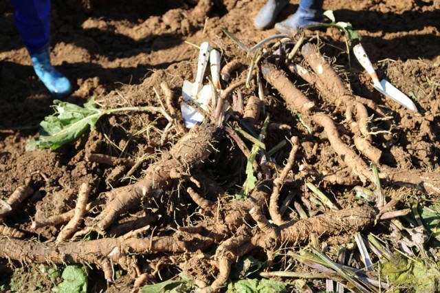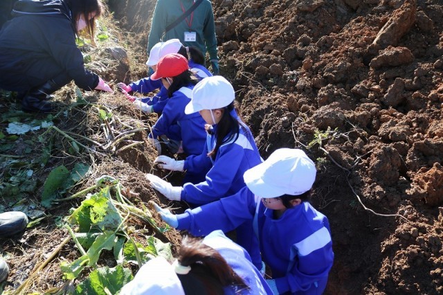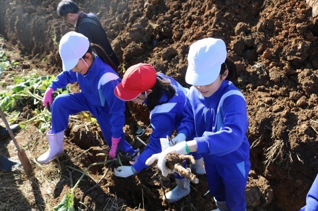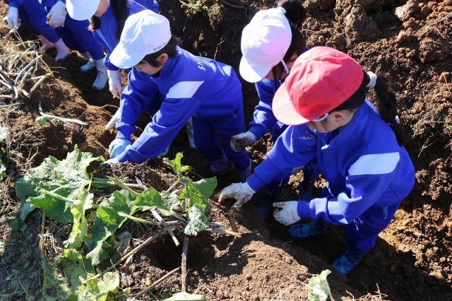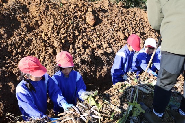 子どもたちは、「こんなに大きなはたごんぼを掘れてうれしい」「めっちゃおいしいから、たくさんの人に知ってもらいたい」「家で、お母さんにはたごんぼ茶と豚汁にしてもらおう」と大喜びでした。