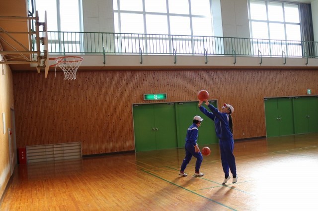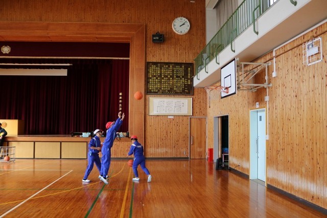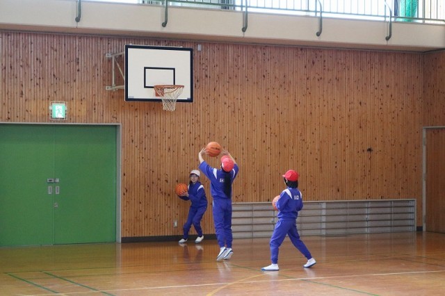5年生の体育の授業の様子です。子どもたちはバスケットボールをリンクめがけて一生懸命投げていました。ゴールに入ると「やったー」と、喜んでいました。とてもいい雰囲気で楽しく活動していました。