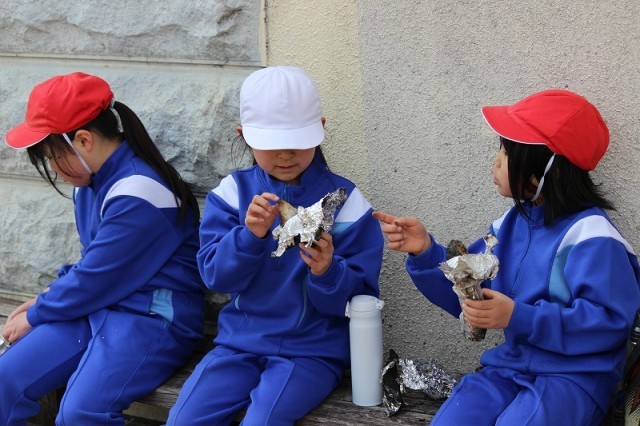 子どもたちは、ほくほくに焼き上がったお芋を手に取り、「おいしい!」「あまい!」「売れる!」と大喜び。
