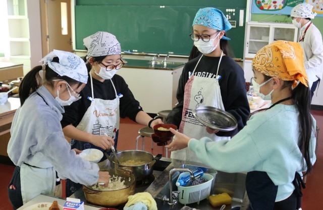 3・4時間目の家庭科で「ごはんとみそしる作り」の調理実習を行いました。