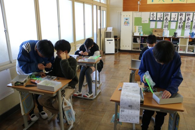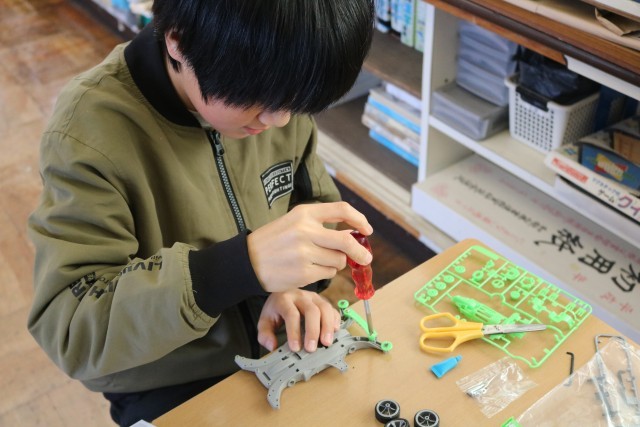 6年生の理科と家庭科では、先日からミニ四駆作りを通して電気自動車について学んでいます。