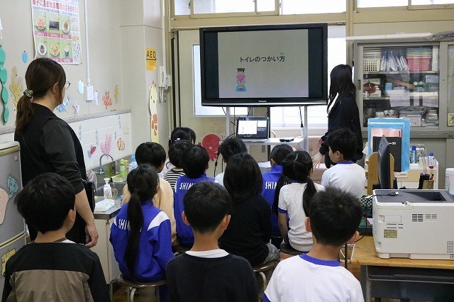 2・3年生はトイレの使い方の保健指導のあと、身体計測を行いました。