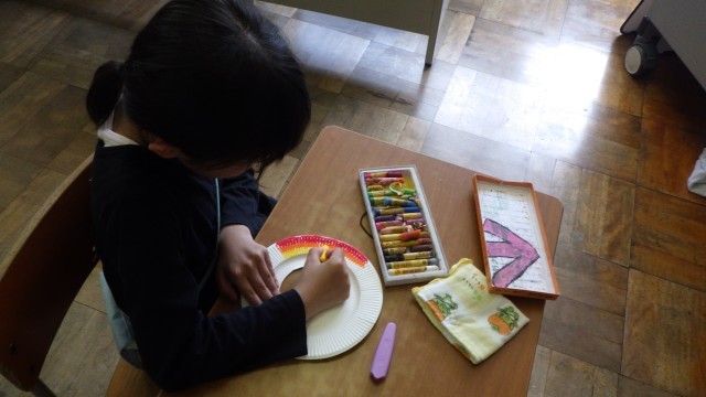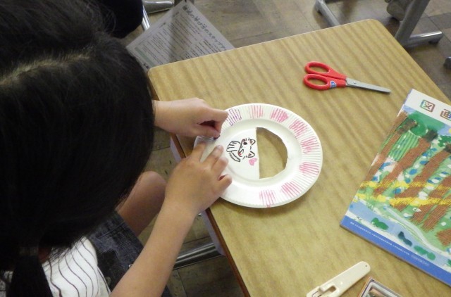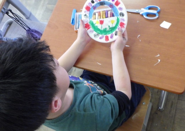 図画工作の時間に、紙皿を使って、工作を作りました。