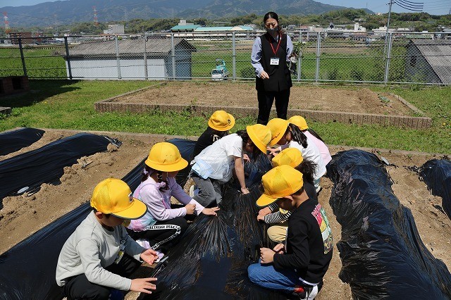 4月16日(木)今日はさつまいもの苗を植えました。「優しく土をかけてください。」...