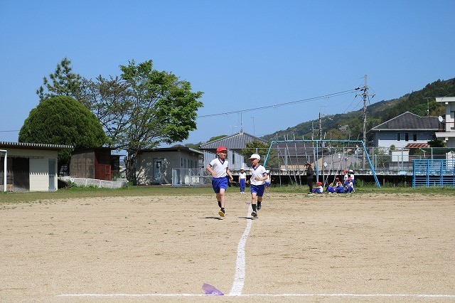 4月16日(木)2・3年生の体育では50メートル走を走りました。とても真剣な顔で...