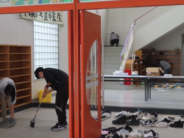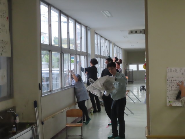 本日はたくさんの保護者の方に参加していただき、環境整備作業をおこないました。天候不良のため予定通りの作業はできませんでしたが、校舎内、体育館を中心に作業していただきました。