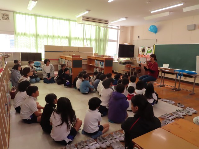 本日、ロング休憩にすみだこども園の先生方が来校され、2年生に読み聞かせをしていただきました。