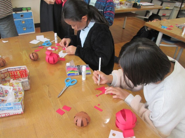 今日のふれあいルームでは、クリスマスにちなんで「まんまるサンタ」の作り方を教えていただきました。