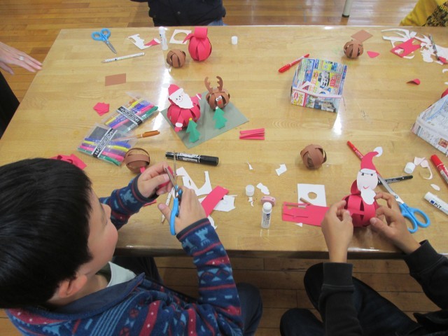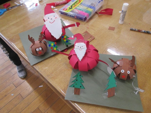 可愛い表情のサンタさんがたくさんできました。 トナカイやそり、プレゼントまでじっくりこだわり、大切に作っていました。