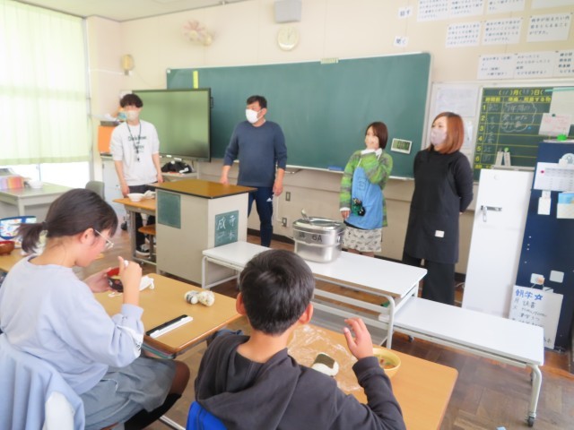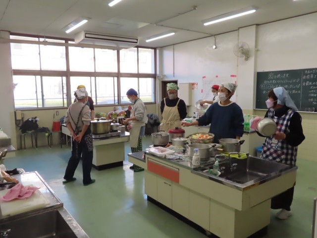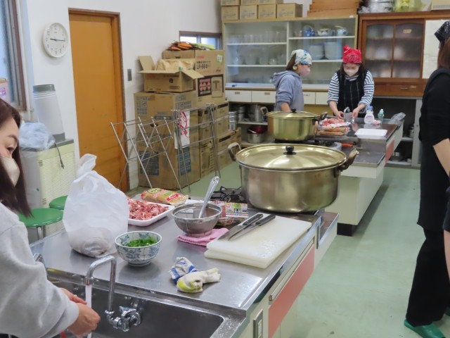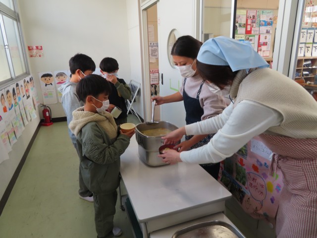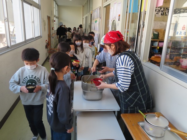 マラソン大会をがんばった子供たちのためにPTA保体部の方々が朝早くから準備し、おいしい豚汁をつくってくださいました。