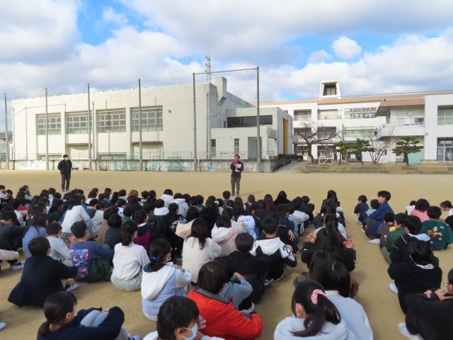今回は児童にはいつ発生するかは事前に知らせずに休憩時間におこないました。