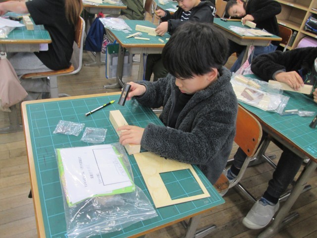 「とんとん釘打ち写真立て」作りはじめました! 3年生