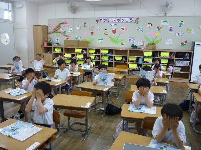 今日は、国語の時間に校長先生が来てくれたので、音読を聞いてもらいました。大きな声でハキハキ音読する姿に校長先生もびっくり!「見やんでもできるで~」と目隠し音読を披露する子もたくさんいました。