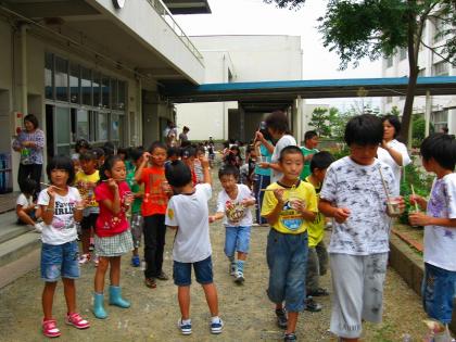 ・きょうはのびっこさんといっしょにしゃぼんだまをしました。とってもとってもたのしかったです。また、のびっこさんとやりたいです。