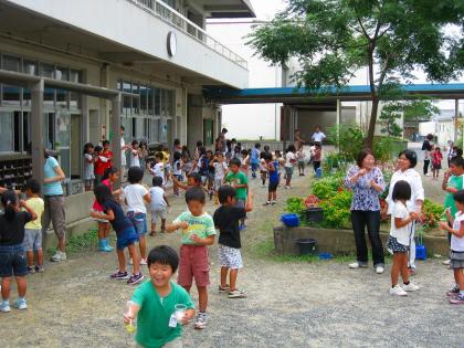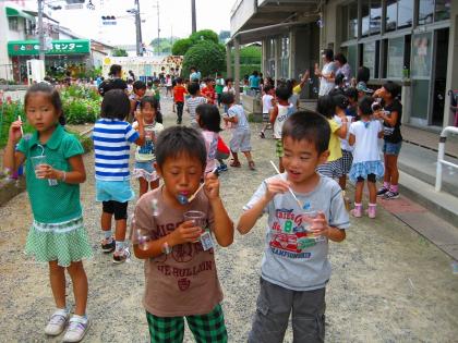 ・しゃぼんだまをしたよ。にじいろできれいだったよ。えきがしゃんぷうみたいになったよ。