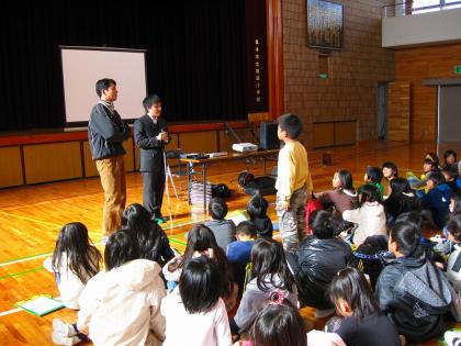 ・今日、私は、2・3時間目に、体育かんで目が見えない大前まさし先生の話を聞きました。大前まさし先生は、パソコンをしてるっていっていました。目が見えないのに、どうやってがめんを見ているのかなって思いました。大前まさし先生がつかっているパソコンをもってきてくれてました。そのパソコンには、がめんに書いていることを言うきかいがありました。それを見て、私はすごいなって思いました。これからも、目が見えない人がこまっているときには、声をかけてたすけてあげたいです。