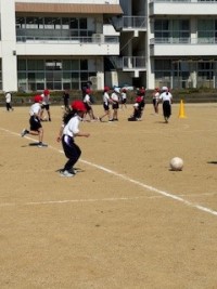 人数が多くなるので、1クラスは運動場でしました。