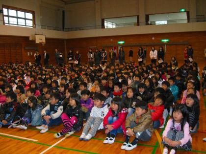 放送が終わって、避難の指示が出てから、5分弱で全員体育館に集合できました。