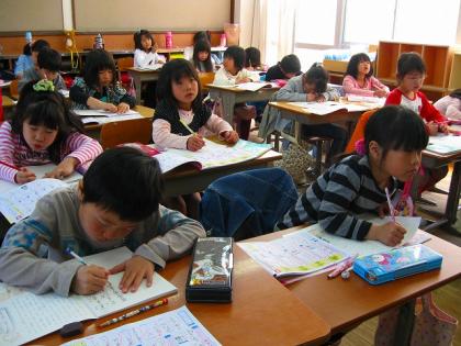 漢字ドリルに丁寧に漢字を書いていました。