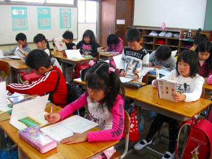 3年生の国語では、教科書の肇の詩を綺麗にうつしていました。