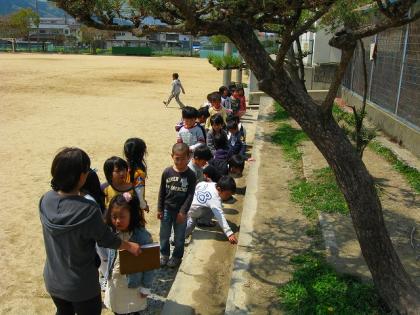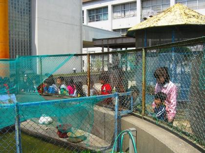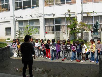 遊具の説明に続いて、中庭・飼育小屋・体育館などのお話を聞きました。