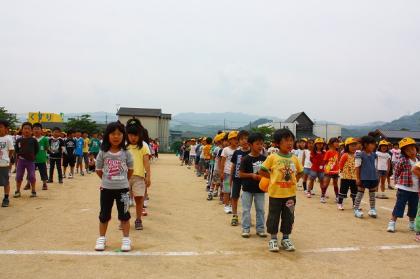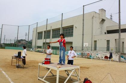 ・うんどうかいでがんばりたいことは、ダンスを笑顔でいっしょうけんめいおどること。ときょうそうは、とくてんはつかないけれど、いっしょうけんめいはしること。グルグルハリケーンは、はしっていきをあわせてがんばりたいと思います。
