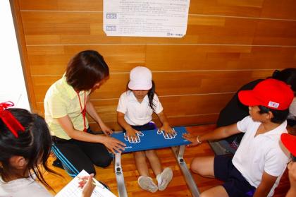各種目の場所に連れて行って、一人ひとり記録を取っていきます。