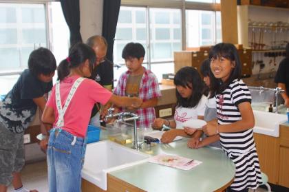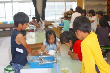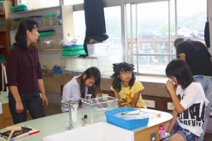 理科の授業では・・・葉の中のデンプンを調べていました。