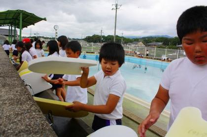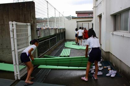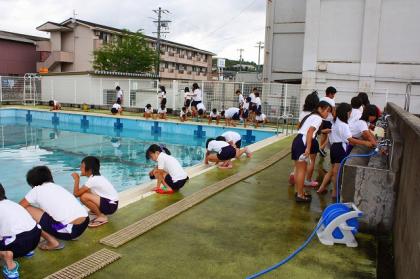 プールサイドや溝、草引きなど、周辺の掃除をしました。