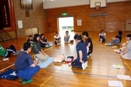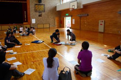 50名ほどの保護者・教員が、心肺蘇生法とAEDの使い方について、全員学びました。