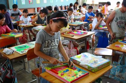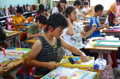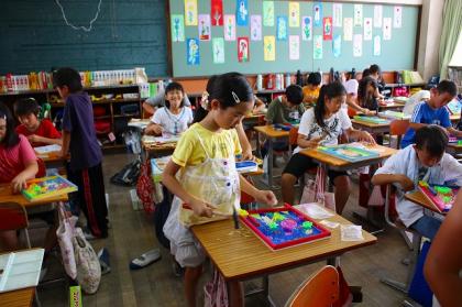 綺麗に色つけをした板に、釘を打ち付けていきます。