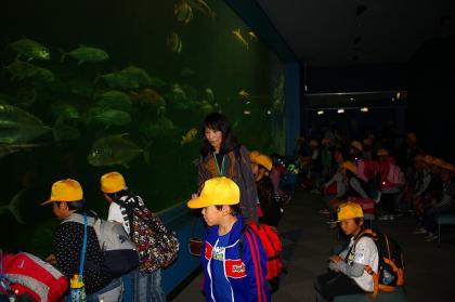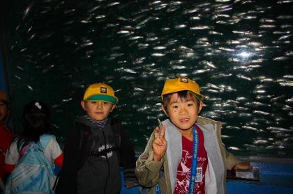 水族館を見学しましたが、たくさんの魚や動物に、興味いっぱいの様子でした。