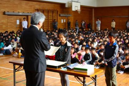 集会で、二学期の学級委員・専門部委員・児童会役員等の任命を行いました。