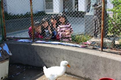 あひる小屋で、4年生の子達がスケッチをしていました。