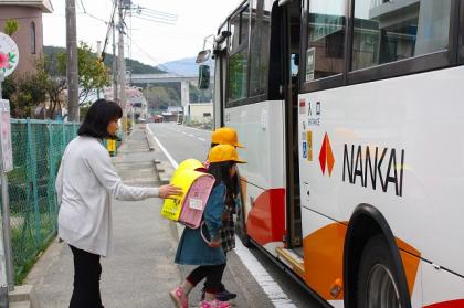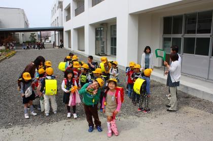 それぞれの方面に分かれての下校ですが、バスの児童は時刻が決まっているので、その時刻まで待っています。