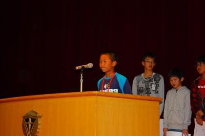 まず、児童長候補の立会演説です。
