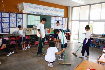 教室や階段でも、みんなで力を合わせて、綺麗にしていました。