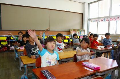教室には、習ったひらがなが並べられています。
