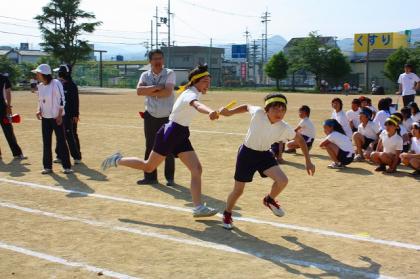 バトンの渡し方やリレーゾーンの使い方を学んでいきます。