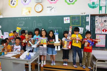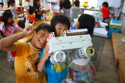 子ども達は、テープやのり、ボンドなどで、様々に組み合わせて作っていました。