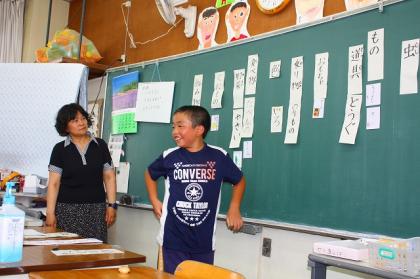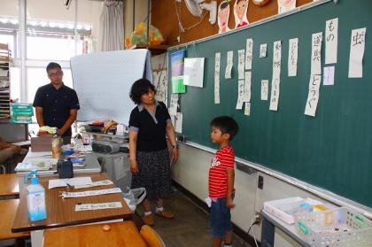 「絵カード」の仲間分けは、自分のカード2枚を使いました。