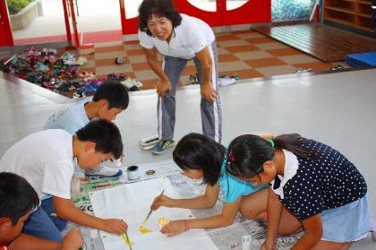 隅田中学校区健全育成会の取組の一つとして、横断幕を作ることになりました。中庭から見えるようにしますので、楽しみにしていて下さい。