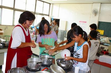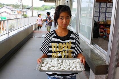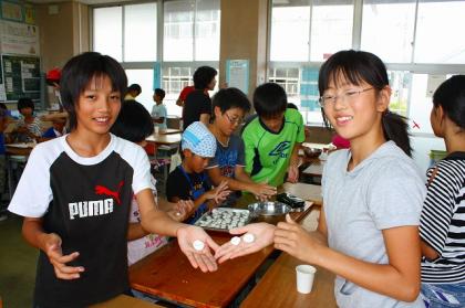 丸め終わると、ゆがきに調理室に行きました。