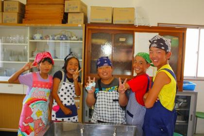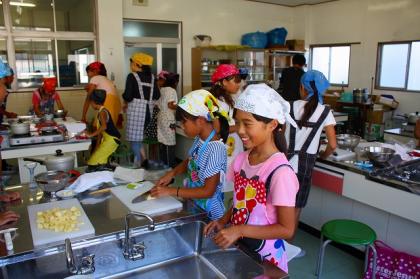 ジャガイモがゆがき上がるまで、周りの片付けをして、しばしシェフ気分。